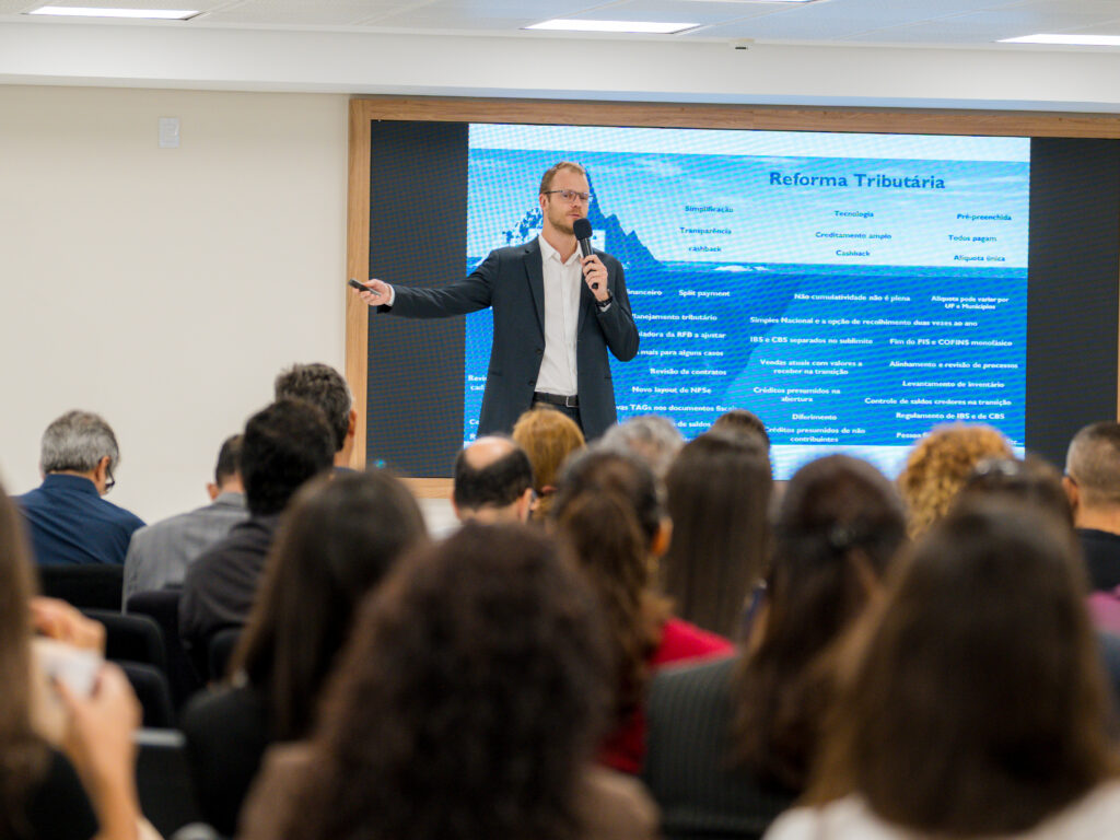Já Tiago Schimit chamou a atenção para a responsabilidade direta dos contribuintes diante do novo cenário tributário. “A reforma tributária não é um problema ou uma preocupação exclusiva do contador, mas do contribuinte, que precisa compreender as mudanças para tomar decisões mais seguras e estratégicas dentro da empresa”.